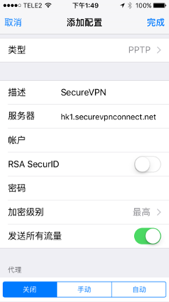 For iOS 9 or less, use this tutorial to manually set up an PPTP VPN connection on your iPhone or iPad.