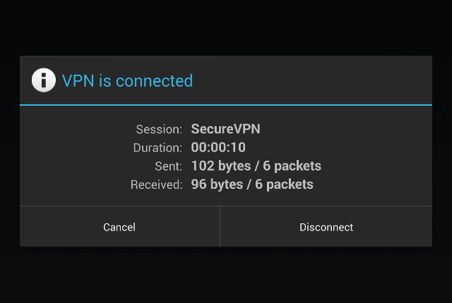 With the active VPN-connection will appear "key" icon in the upper left corner of the screen. To break VPN-connection tap the connection and hit Disconnect.
