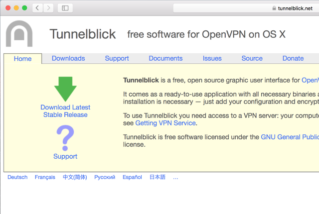 In order to setup VPN-connection via OpenVPN protocol on your iMac or Macbook you will need to install additional software. Currently the most popular OpenVPN clients for Mac OS X are freeware Tunnelblick and paid Viscosity. For our guide we chose connection via Tunnelblick, as it is the most popular solution.