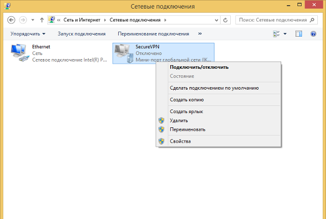 Для использования созданного VPN-подключения кликнуть по значку сетевого соединения в системном трее, в появившемся меню выбрать требуемое соединение, после чего нажать кнопку Подключить.